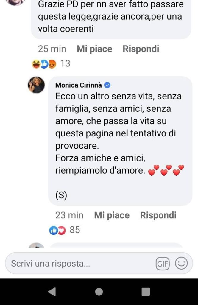 Monica Cirinnà (e chi la coadiuva nella gestione degli spazi social) non è nuova a certe pessime uscite, anche quando l’interlocutore argomenta in modo razionale come adesso (il DDL Zan è stato effettivamente boicottato dall’interno).
