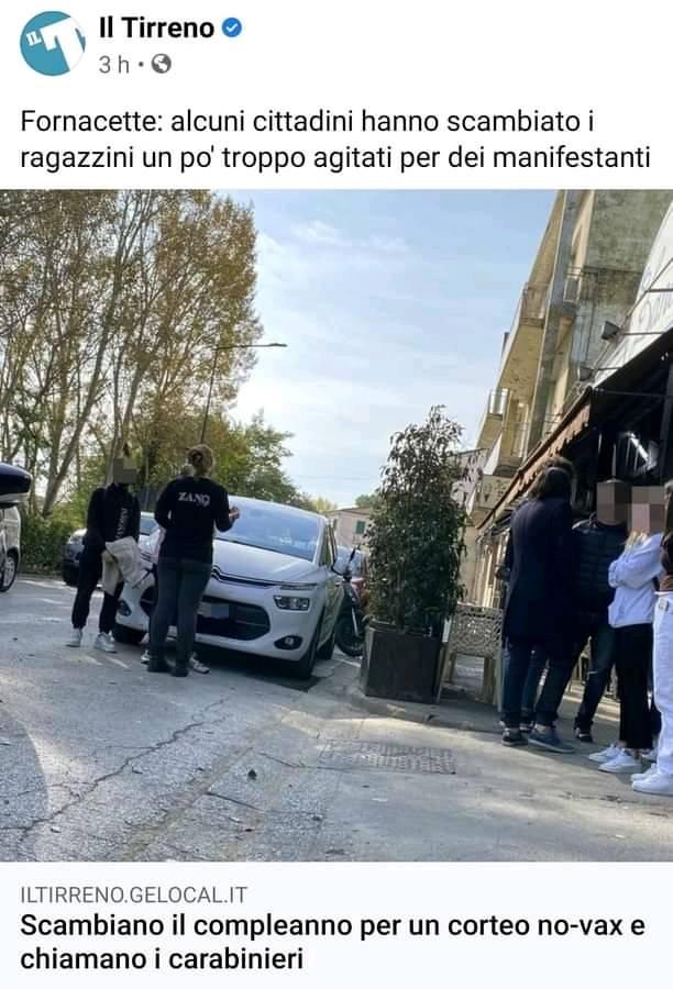 A Fornacette, nel pisano, alcuni cittadini scambiano per “no-vax” scalmanati un gruppo di ragazzini che stanno facendo una festa e chiamano i Carabinieri (come se essere no-vax fosse un crimine). Una riproposizione della “caccia all’untore” vista nella primavera del 2020, un altro frutto maligno di quella propaganda “agitativa” “interna” che ha sfaldato la coesione sociale seminando il panico, incoraggiando la delazione, insinuando il sospetto, diffondendo l’odio. Gli stessi motivi alla base del comportamento deontologicamente orribile di una farmacista bergamasca, che rifiuta di fare i tamponi ai “no-vax” perché il padre sarebbe morto di Covid.