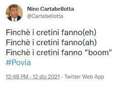 Già segnalatosi in passato per qualche previsione troppo “temeraria”, Nino Cartabellotta non si rende solo protagonista di una grande caduta di stile e non dimostra solo una grave mancanza di etica deontologica (un medico che cyberbullizza un malato), ma fa, senza rendersene conto, il gioco degli stessi “no-vax. Il presidente della fondazione GIMBE suggerisce infatti implicitamente l’idea che il vaccino avrebbe evitato a Povia di contrarre il Covid, quando invece evita soprattutto le forme più severe della malattia (e il cantante sta bene, per fortuna). Puerili, infine, i tentativi di difendersi, tra vittimismo, accuse di novaxismo e squadrismo, per arrivare a sfiorare il grottesco con “il mio tweet riprendeva solo il teso originale di una canzone di Povia”.
